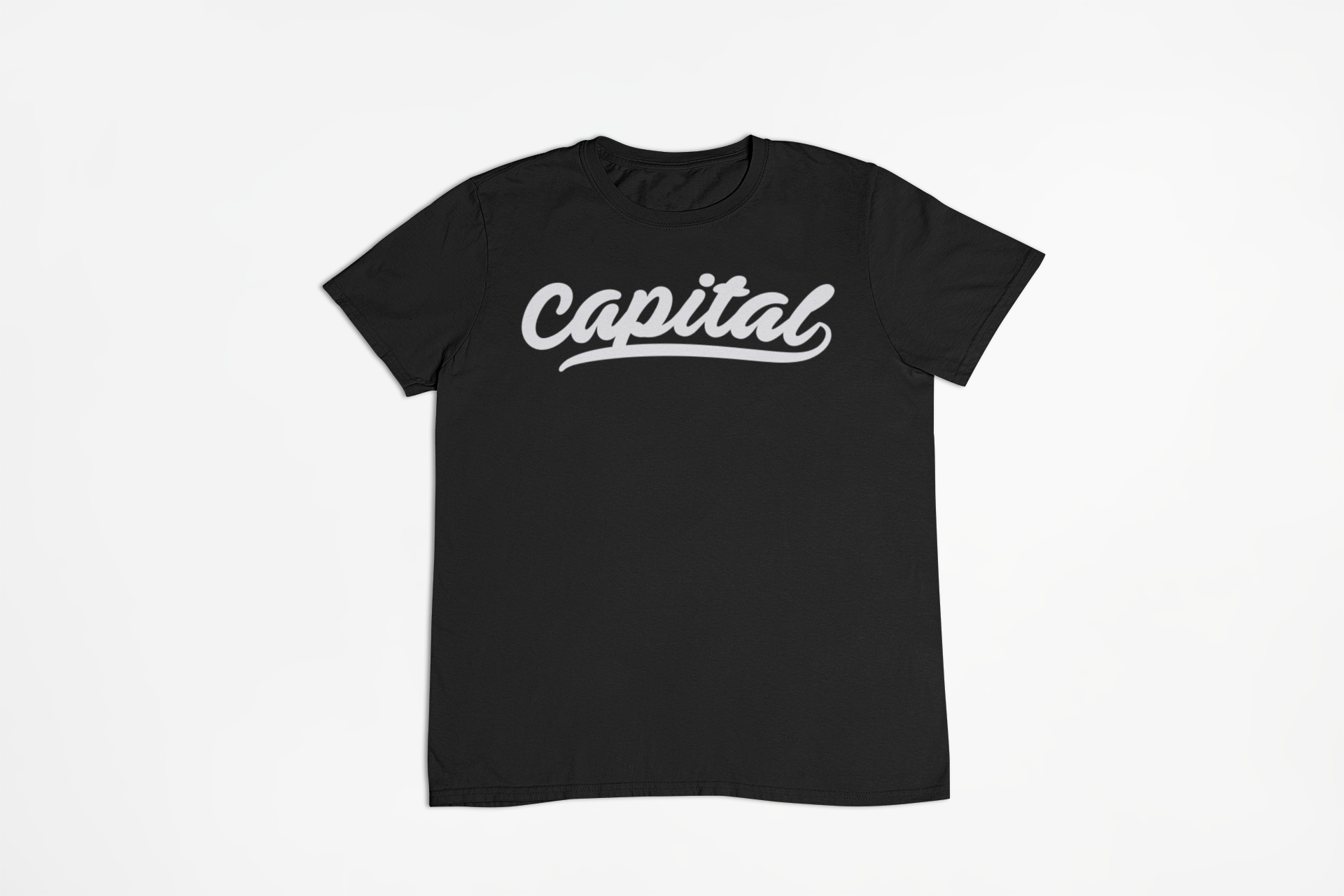 Our Classic “Capital” Tee in black, printed with white letters. The Capital Tee, inspired by the famous Crenshaw Tee from Nipsey Hussle, is meant to inspire perseverance and dedication whether that be increasing your Capital(monetary assets) or going all out and doing it big for your community! Proceeds for every sale will go towards the All For One Foundation and their goal to uplift and assist minorities.